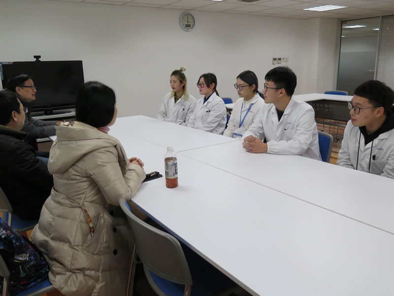 与实习单位交流中,走访组对实习单位为我校学生提供的优越实习环境表示了感谢,并听取了实习单位对我校实习生的综合评价和对学生培养的建议。上海爱丽纺织技术检验有限公司副总经理刘君对我校学生的实习表现给予了肯定,认为我校学生在实习期间能服从管理,专业能力较强;公司日方领导吉冈阳一郎也表示希望能与学校进一步合作。双方还就继续加强校企合作、深化产教融合进行了交流和探讨。
