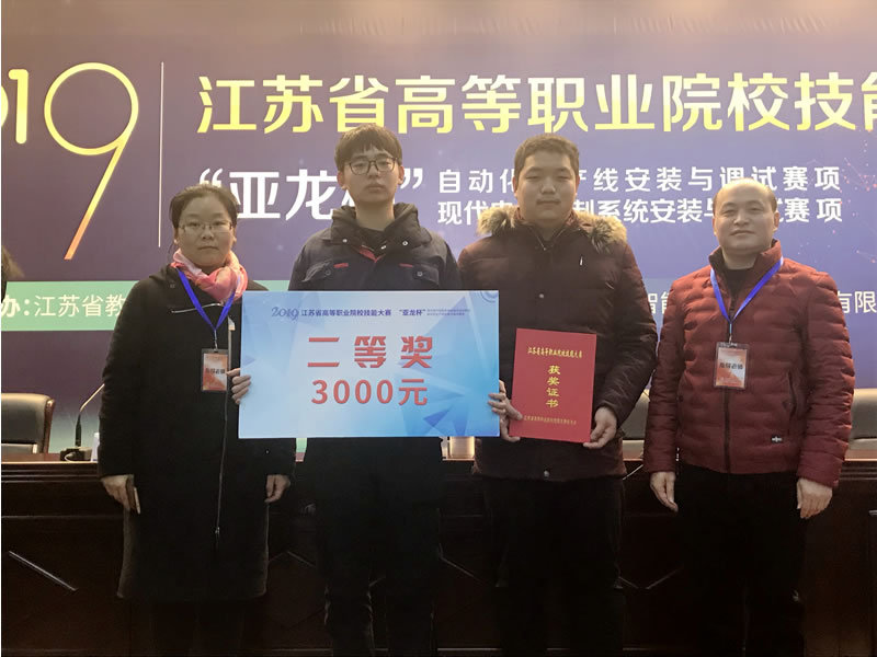 “现代电气控制系统安装与调试”赛项为传统经典赛项,已连续举办国赛2年,覆盖了电气自动化技术、机电一体化技术、工业网络控制技术、低压电器应用等众多专业技术和核心技能。此次共有省内44所学校参赛,竞争淘汰非常残酷。卞茂华、董淑畅两位学生在黄晓伟、陈贤两位指导老师的带领下,沉着迎战,获得了该赛项团体二等奖、排名第六的好成绩。