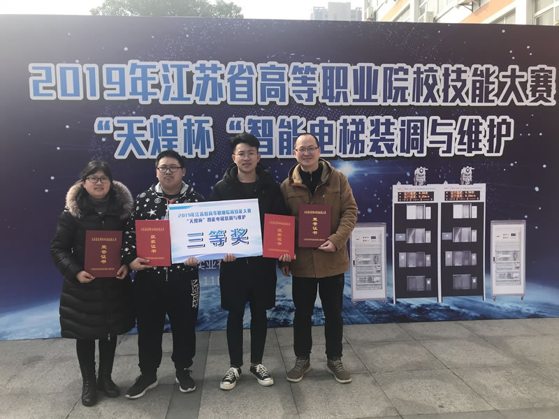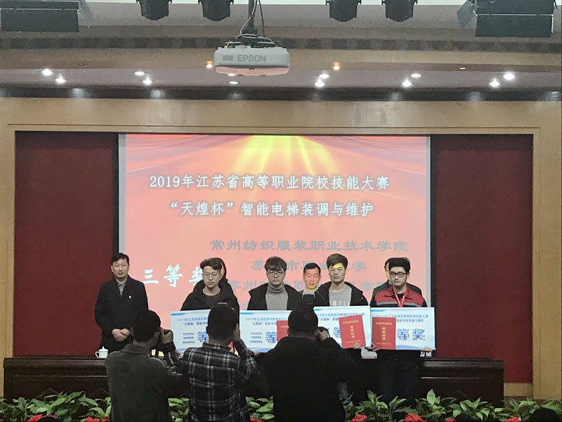 “智能电梯装调与维护”赛项受专家认可度高,且已连续举办国赛3年。比赛中,选手需完成电梯电气控制原理图设计与绘制、电梯机构安装与检测装置调整、电梯电气控制柜的器件安装与线路连接、电梯控制程序设计与调试、电梯故障诊断与排除等工作。比赛共有来自全省12个学校的代表队参加,参赛队中有4支是去年国赛获奖队伍,比赛竞争异常激烈。张玉浩、孙冒两位学生在师帅、颜建美两位指导教师的带领下,团结协作,以大赛第4名的成绩荣获三等奖,保留了参加国赛的希望。