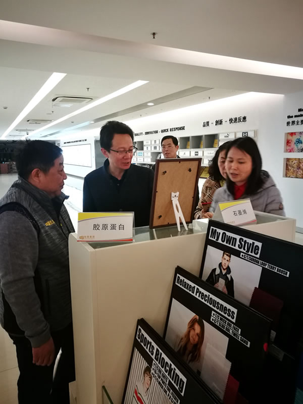 调研中,我校一行认真听取了常州旭荣针织印染有限公司总经理张国成对企业的介绍,参观了企业样品室、测试中心及研发中心等。洪霄充分肯定了校企双方在人才培养、工学交替、科研合作等多方面合作取得的成绩,就现代学徒制人才培养、技术研发、培训、师资培养、校企会(纺织学会)及国际合作(越南厂区)等相关内容,双方进行了深度洽谈并达成了合作协议。