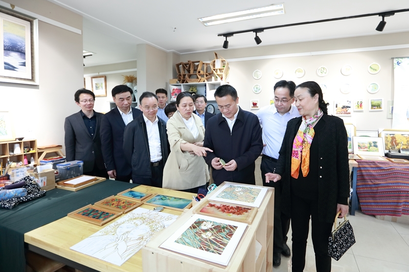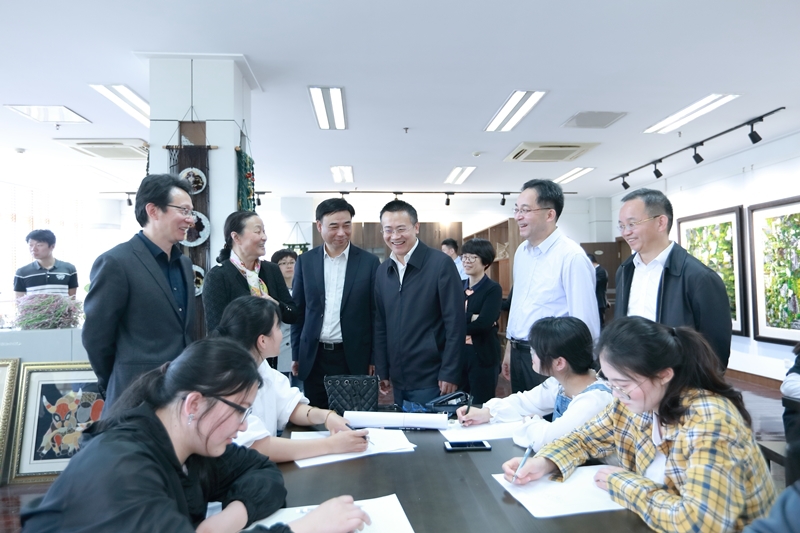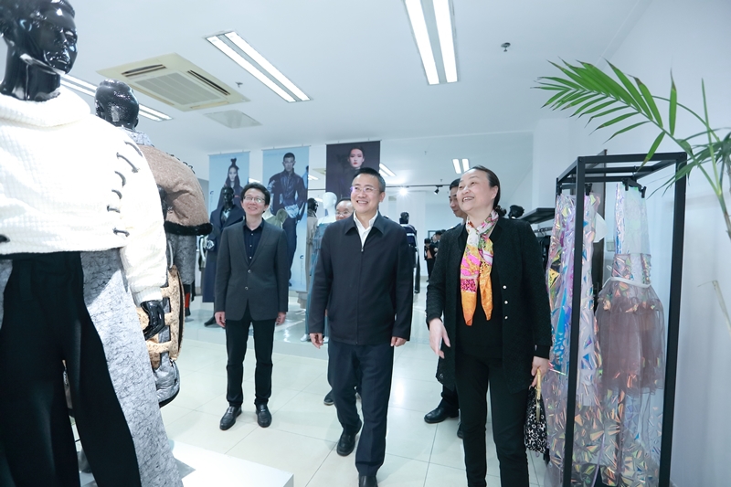 调研期间,蔡长华一行考察了我校文化展示中心,先后参观了学校校史陈列馆、面料陈列馆、服饰文化馆(含京剧馆)、服饰品工作室、皮具设计工作室、时尚礼品设计工作室、纤维艺术工作室、张学义艺术工作室等场馆。结合各场馆及工作室建设,蒋心亚、洪霄向蔡长华一行介绍了我校整体办学情况、办学特色、人才培养、创新创业、校企合作与社会服务等情况。