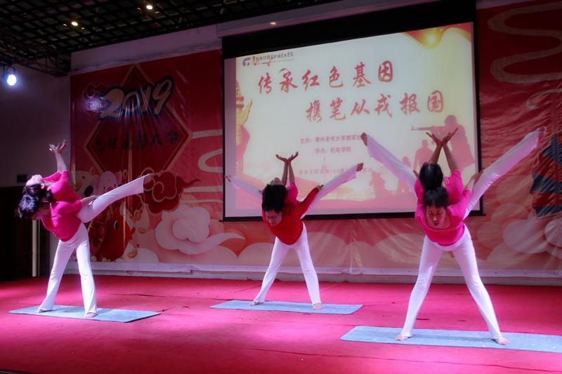 在五四运动100周年来临之际,为积极落实学校关于国防教育和征兵工作的要求,4月25日下午,机电学院邀请常州老年大学拥军社团、瑜伽社团来我校开展爱国主义教育暨征兵宣传活动。驻常部队传统教育顾问顾其良,参加过对越自卫反击战的蒋元初,常州市老年大学拥军社团负责人、“江苏省优秀文化老人”毛勤华,机电学院关工委成员王一曙、陈跃安、马华琦,学校副院长张震宇、党委宣传部部长夏斌、学工部(人武部)部长李洁琦、校团委副书记李凯、机电学院党政领导出席了本次活动。全校300余名学生参加活动。