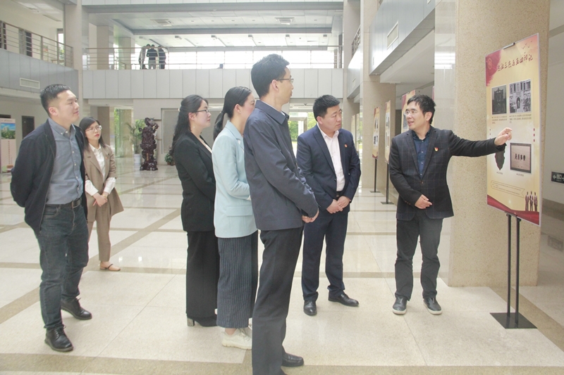 会后,党委副书记、纪委书记王顺明和与会领导、老师和学生共同前往文化展示中心一楼大厅观摩由《热血三杰与五四印记》纪念五四运动100周年主题图片展,他指出,青年学生要牢记爱国精神,努力成长为实现中华民族伟大复兴中国梦的生力军。