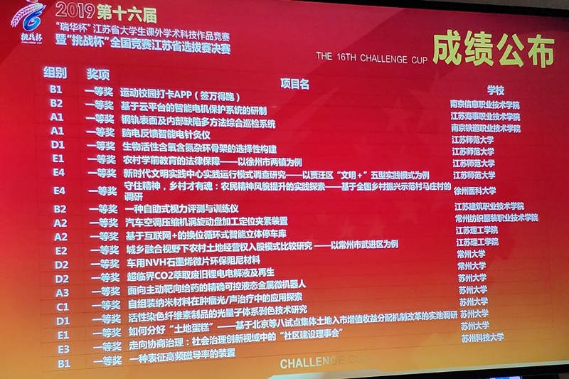 我校喜获江苏省大学生课外学术科技作品竞赛一等奖