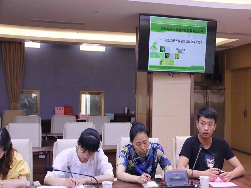 为进一步加强我校学生的素养礼仪,增强学生的文明礼仪和安全意识,培养学生在校园内形成文明行走的习惯,近期我校学工处组织全体值班辅导员在学生上下课时间集中时间段,带领学生干部在校园的主干道开展了为期两周的校园交通礼仪引导活动。6月4日上午10:00学工处在1646召开了此次活动的分享交流会。学校副院长张震宇、学工处处长李洁琦出席交流会,人文学院党总支副书记高嗣超、学工处大学生教育与管理中心主任郑可乐、各二级学院学工办主任、辅导员代表和学生代表参加分享交流。会议由学工处副处长乔丽娟主持。