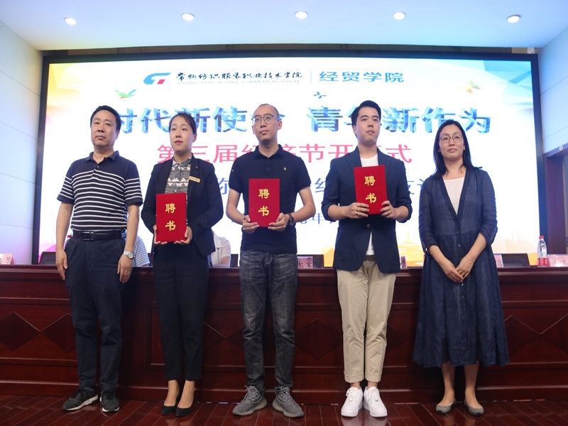 6月5日下午,经贸学院以“时代新使命,青年新作为”为主题的经济节开幕式在学校图文报告厅举行。经贸学院党政班子出席了开幕式,常州都喜天丽富都长江龙城酒店人力资源部经理蒋美琴、上海罗氏制药有限公司高级医药信息顾问张岩、天昂电子商务有限公司总经理沈济南等校友应邀出席开幕式。