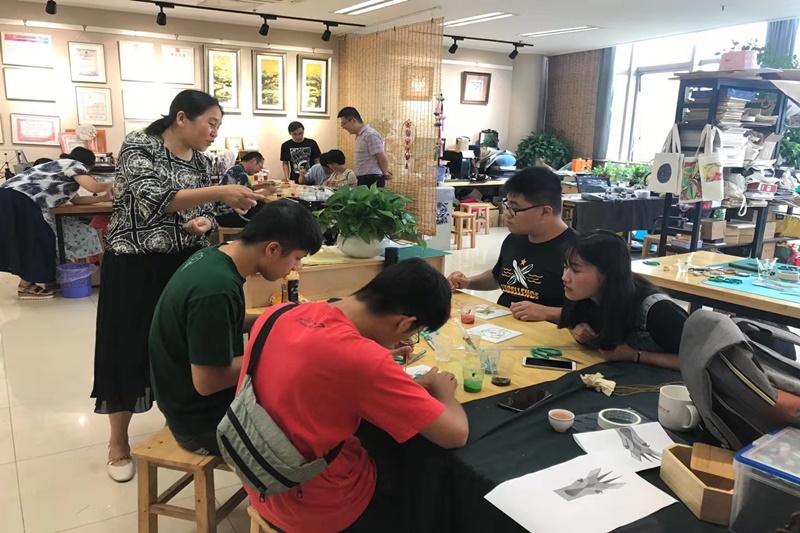 7月11日上午,圣约翰师生参观了我校东区实训中心,然后前往我校文化展示中心掐丝珐琅工作室及皮具工作室体验手工制作。创意学院许晓婷和徐静老师、服装学院赵凯老师精心设计了制作体验活动方案,耐心指导师生制作。参与制作的师生们也饶有兴致,用心体悟,每人都在规定时间内完成了自己的得意之作,并作为纪念品带回珍藏。下午,师生们探访了白象梳篦厂,亲自体验了梳篦加工的乐趣,领略了常州宫梳名篦的由来及发展历史,随后大家移步运河五号,详尽地了解了常州的历史,并领略了在常的台湾青创企业家的风采。