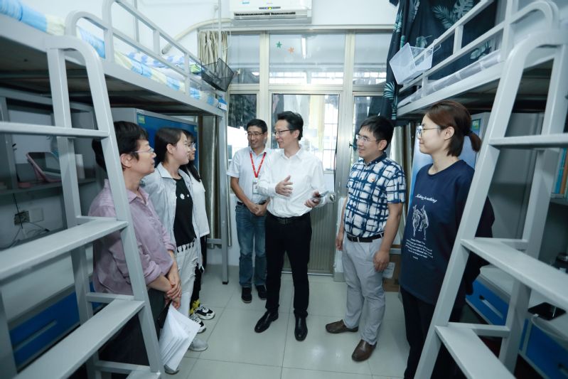 走访期间,洪院长还检查了公寓中心和楼栋值班室来访人员登记情况等,要求公寓中心务必加强宿舍管理,确保学生宿舍安全。同时,他叮嘱后勤服务总公司、学工处和各二级学院一定要增强服务意识,切实及时了解和解决同学们的困难,为同学们的吃住、学习和生活提供良好的保障。
