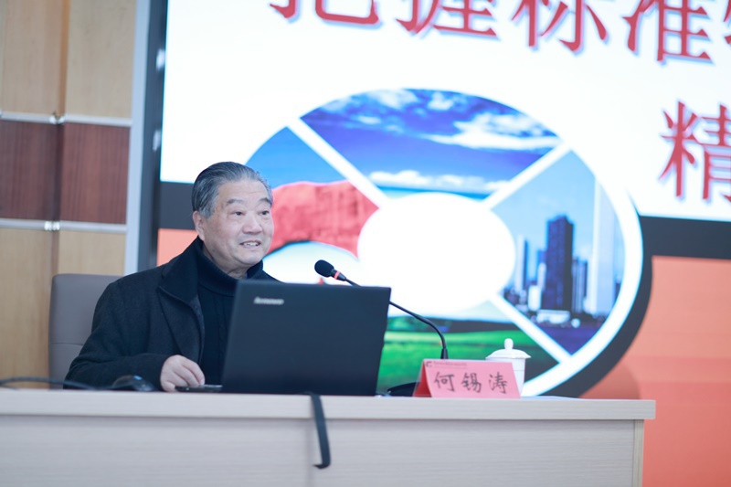 会上,何教授从适应形势建标准、了解概念明标准、依据目标定标准、搜索文件选标准、掌握特点编标准、符合规范写标准、做好标准的建议等七个方面进行讲解,理论联系实际,以生动的案例,风趣的语言做了一场内涵深刻、内容丰富、深入浅出的报告,对我校下一步如何开展好工作标准制定工作,提高工作标准制定工作的质量具有现实的指导意义。