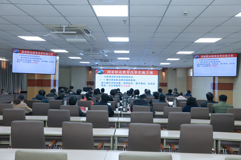 2019年11月10日下午,全国职业院校教学工作诊断与改进专家委员会委员何锡涛教授应邀来我校做了题为《把握标准特点精心打造两链》的专题报告。校领导班子成员、中层正职干部等参加了专题报告会。会议由副院长赵玲珍主持。