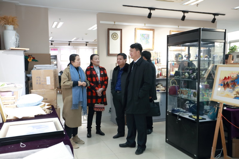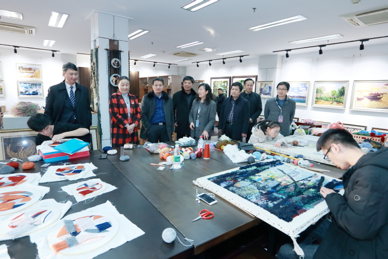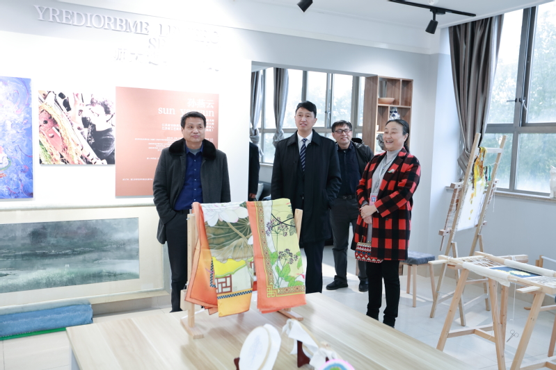 调研期间,邵从清、瞿才新一行首先参观了我校文化展示中心,先后考察了学校校史馆、面料陈列馆、服饰文化馆(含京剧馆)、服饰品工作室、皮具设计工作室、时尚礼品设计工作室、纤维艺术工作室、非遗馆、张学义艺术工作室等场馆;结合各场馆及工作室建设,蒋心亚向邵从清、瞿才新一行介绍了我校的办学情况、办学特色、人才培养、创新创业、校企合作与社会服务等情况。