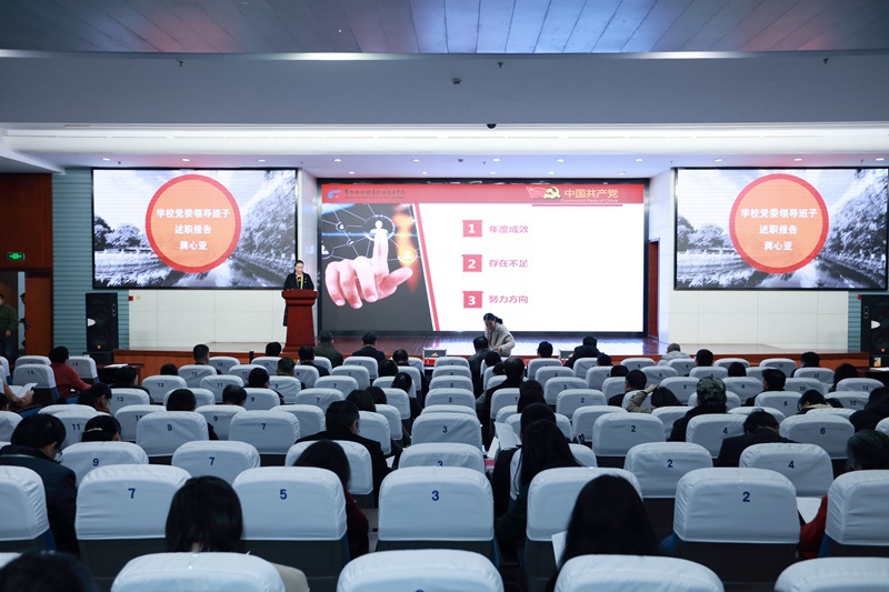 随后,党委书记蒋心亚作2019年度党委领导班子述职报告、干部选拔任用工作报告和个人述职报告。院长洪霄作学校行政领导班子述职报告。