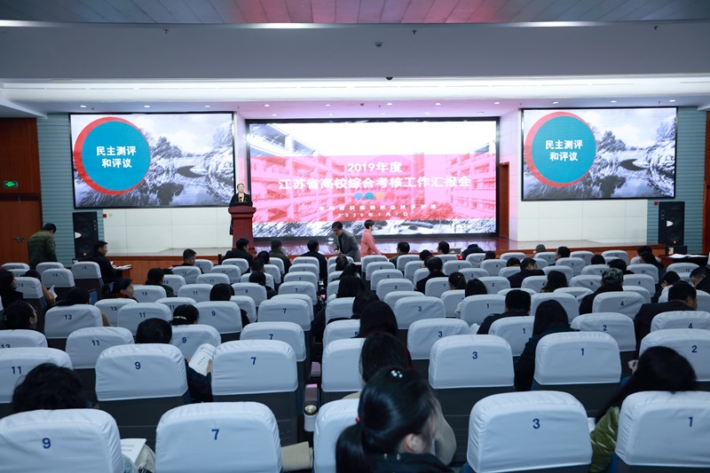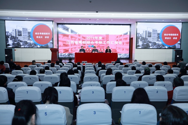 根据省考核委统一安排,1月7日上午,我校在报告厅召开2019年度综合考核工作汇报会。省第十一综合考核组第一考核小组组长、江苏第二师范学院原党委书记李洪天,联络员、省委组织部组织二处二级调研员余祥明,省委组织部干部五处一级主任科员方元庆,江苏联合职业技术学院副院长、党委委员杨晓华,省教育厅监督与审计处四级调研员凌昌满,省教育考试院办公室文秘科副科长吴 铭全体成员到会指导。学校党政领导班子成员、纪委委员、中层干部、区级以上党代表、人大代表、政协委员,民主党派负责人、具有高级职称的专业技术人员代表、基层代表参加会议。会议由党委书记蒋心亚主持。