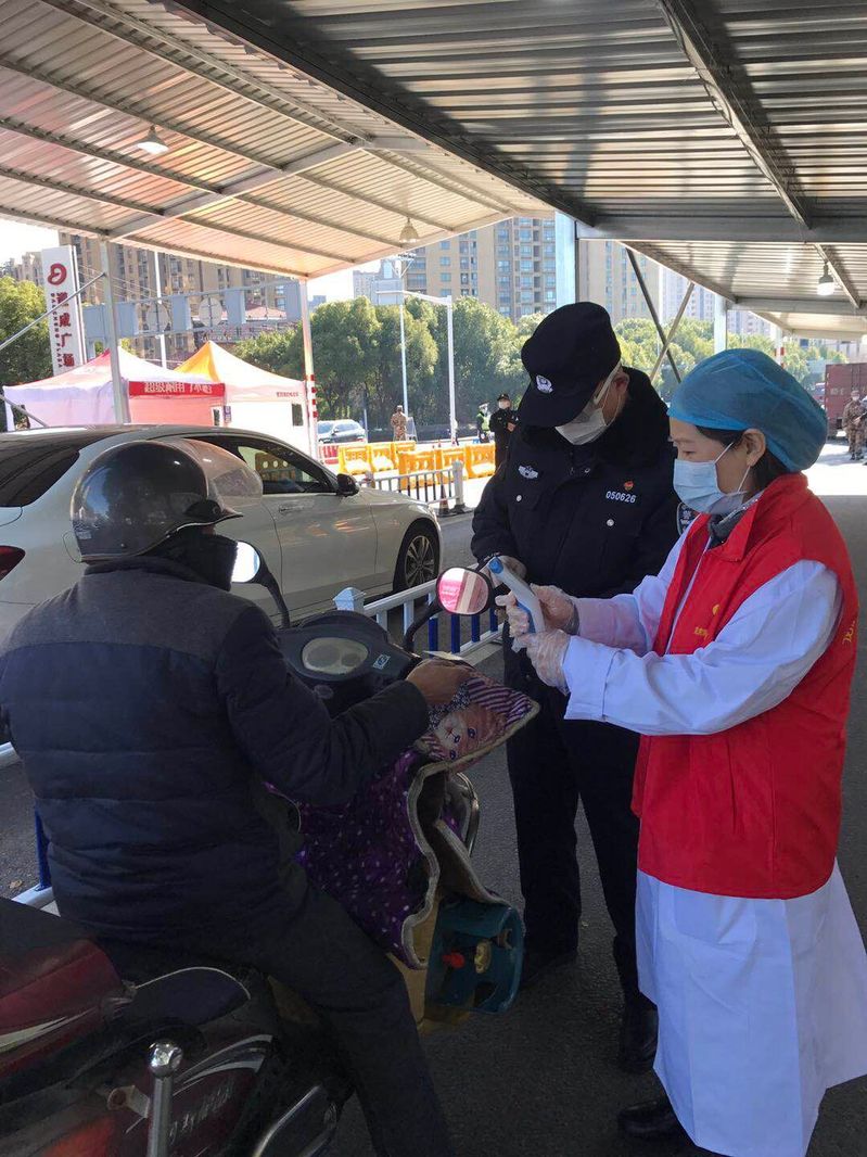 在一次咨询学校疫情防控工作时,侯艳洪同志从市疾控中心工作人员口中得知:马上进入复工阶段,城市各道路车多人多,很多道路疫情联防联控检测点都在招志愿者,尤其缺少医务人员。她毫不犹豫主动报名:到S340省道无锡常州交界卡口进行测温登记等工作。