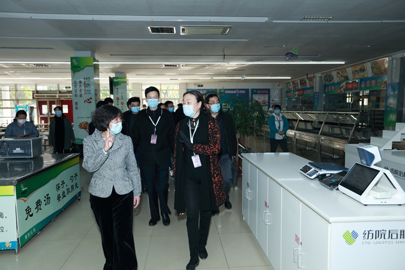 督察组一行先后到学校门岗、食堂、保健站、隔离医学观察场所、学生宿舍等地开展实地检查督导,深入了解校园封闭管理、卫生防疫消毒、人员值班值守、应急隔离、食堂和宿舍管理等方面疫情防控工作的开展情况。蒋心亚向督察组汇报了学校关于落实疫情防控措施、春季学期开学准备、师生员工信息排查、建立联防联控机制等方面的情况。