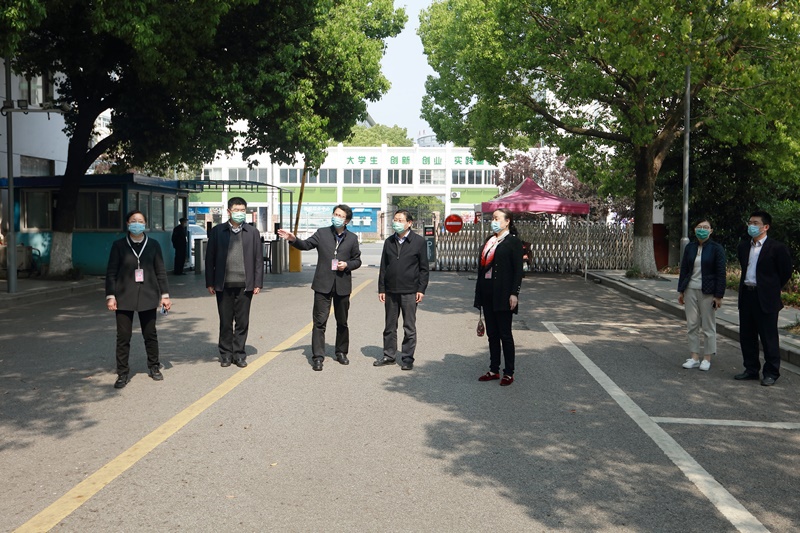 4月22日下午,省委教育工委副书记徐子敏、省教育厅社政处处长王伟、省教育厅安稳处四级调研员刘振华、省教育厅社政处三级主任科员陈磊一行4人来我校检查指导开学工作。学校党委书记蒋心亚、院长洪霄、副院长赵玲珍及相关职能部门负责人陪同检查。