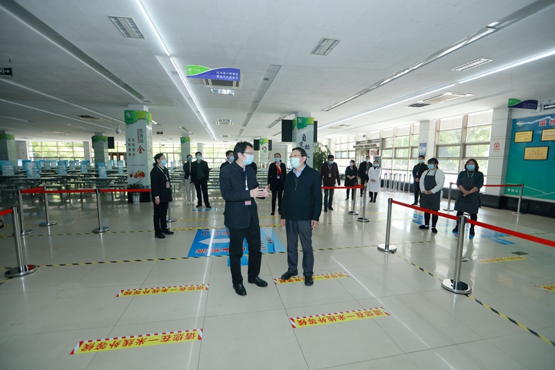 检查指导组一行听取了党委书记蒋心亚关于学校疫情防控与开学准备工作的汇报,实地检查了我校门岗、学生食堂、青教公寓等重点场所,对疫情防控措施落实、学生返校报到安排、防疫物资储备、师生健康状况排查、防控应急预案制定、医学隔离观察点设置、校园清洁消毒等情况进行了督查。工作组对学校的疫情防控和开学准备工作给予了肯定,并提出了完善建议。