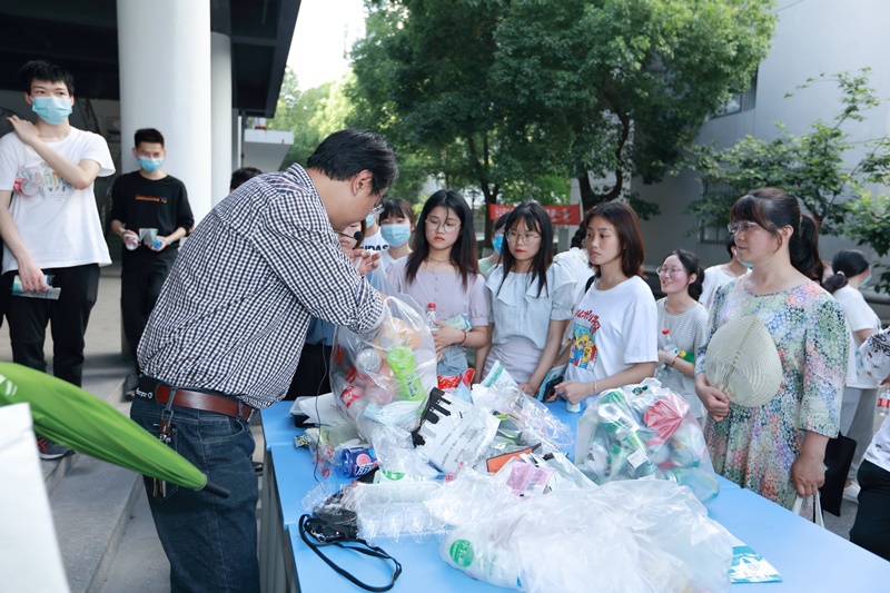 作为江苏省常州市首批引进生活垃圾智能化分类回收箱的高校,平时师生们参与分类投放的热情很高。活动现场,志愿者讲解各种可回收生活垃圾分类法,师生们投放了各类饮料瓶和快递包装、废旧衣物、金属品等。师生们感慨,以前只是听说学校在节能减排、爱护环境方面做了许多项目,今天亲眼所见并亲身体验,收获颇多。