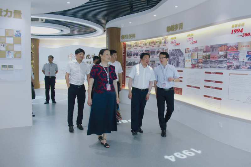 党委书记蒋心亚、院长洪霄陪同海安市委书记顾国标一行参观学校文化展示中心