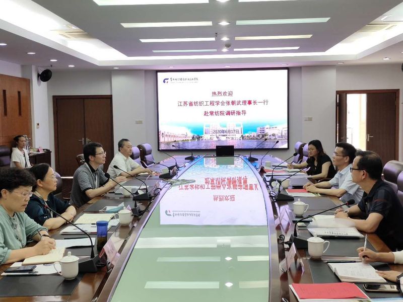 6月17日下午,江苏省纺织工程学会张朝武理事长一行来我校调研并推进继续教育合作事宜。学校院长洪霄、副院长赵玲珍、原副院长贺仰东、继续教育学院院长韩兰娟及纺织学院相关人员参加了此次会议。会议由赵玲珍副院长主持。
