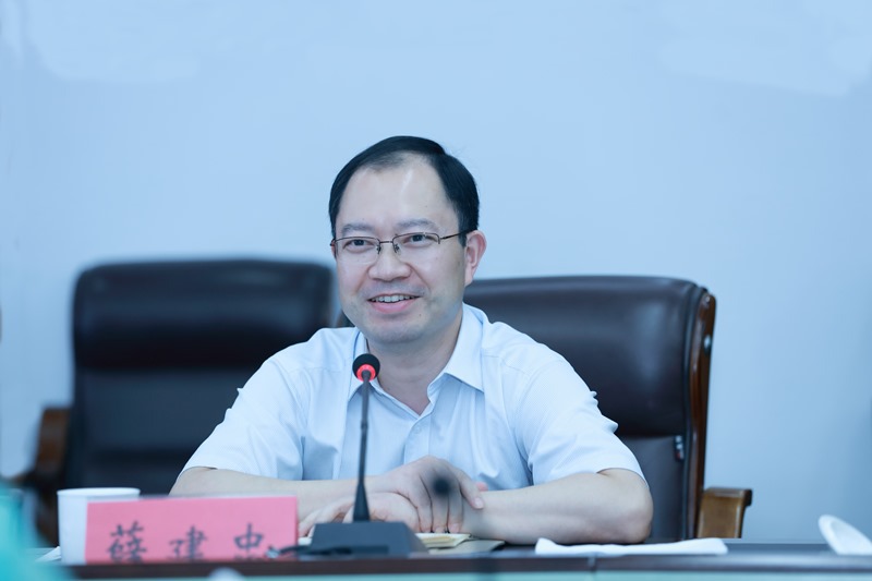 蒋心亚对薛建忠一行的到来表示热烈欢迎,并简要介绍学校基本情况、特色优势,指出学校坐落武进地区,与当地产业高度契合,武进区领导的到来为进一步开展校地对接合作提供了新的契机。希望武进区领导、科技局今后加强和学院联系,学院将更多地参与地方经济建设,更好地在常州经济社会的发展中彰显常纺效应。