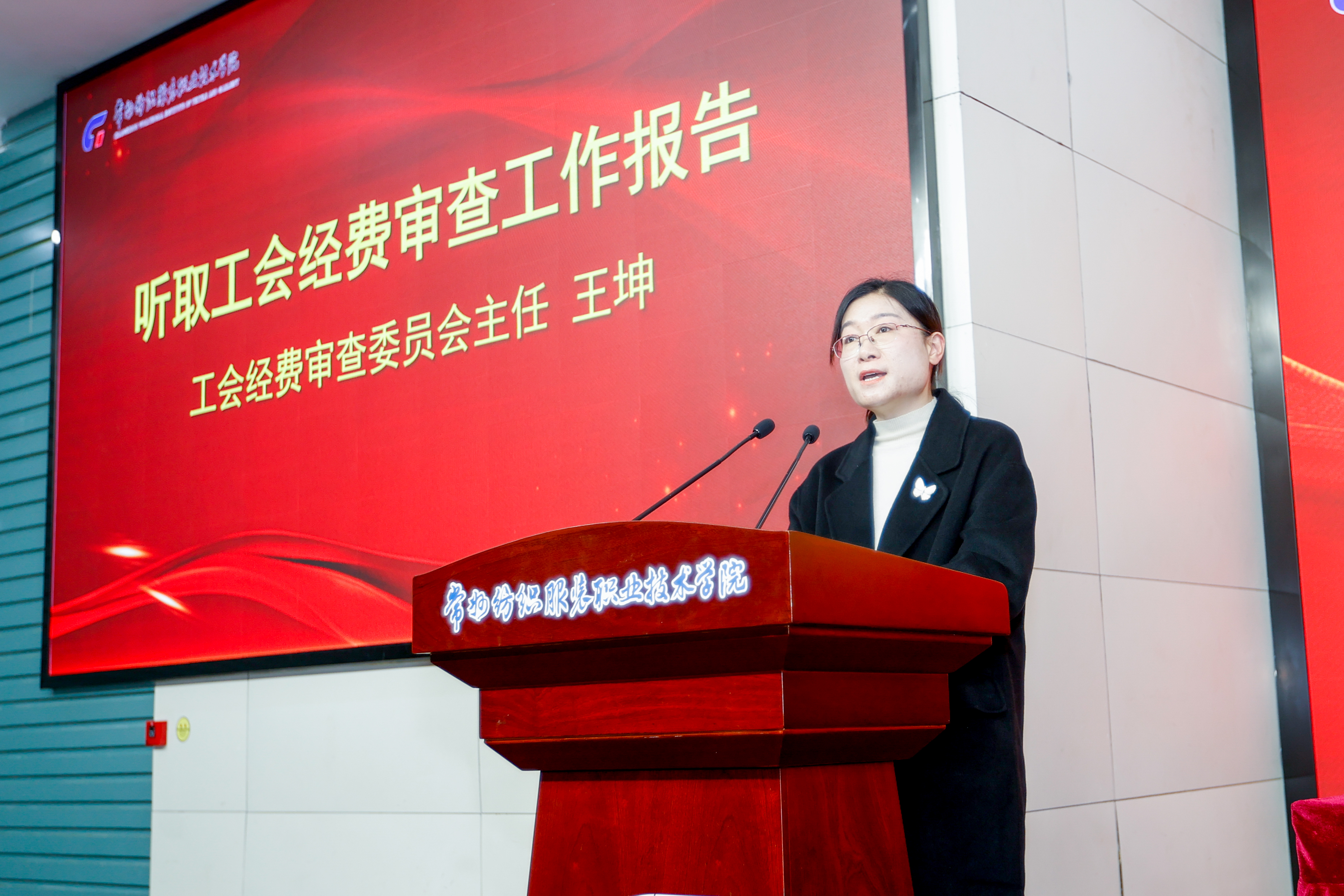 接着,代表们听取了财务处处长余志军作的《2024年度学校财务工作报告》、工会主席胡艳妹作的题为《勠力同心、奋楫笃行,组织动员教职工为学校高质量发展建功立业》的2024年度工会工作报告、工会经费审查委员会主任王坤作的《2024年度工会经费审查工作报告》、提案工作委员会主任顾广涛作的《提案工作落实情况报告》、人事处处长夏冬作的《专业技术职务任职资格评审工作办法(修订)》(草案)修订说明。