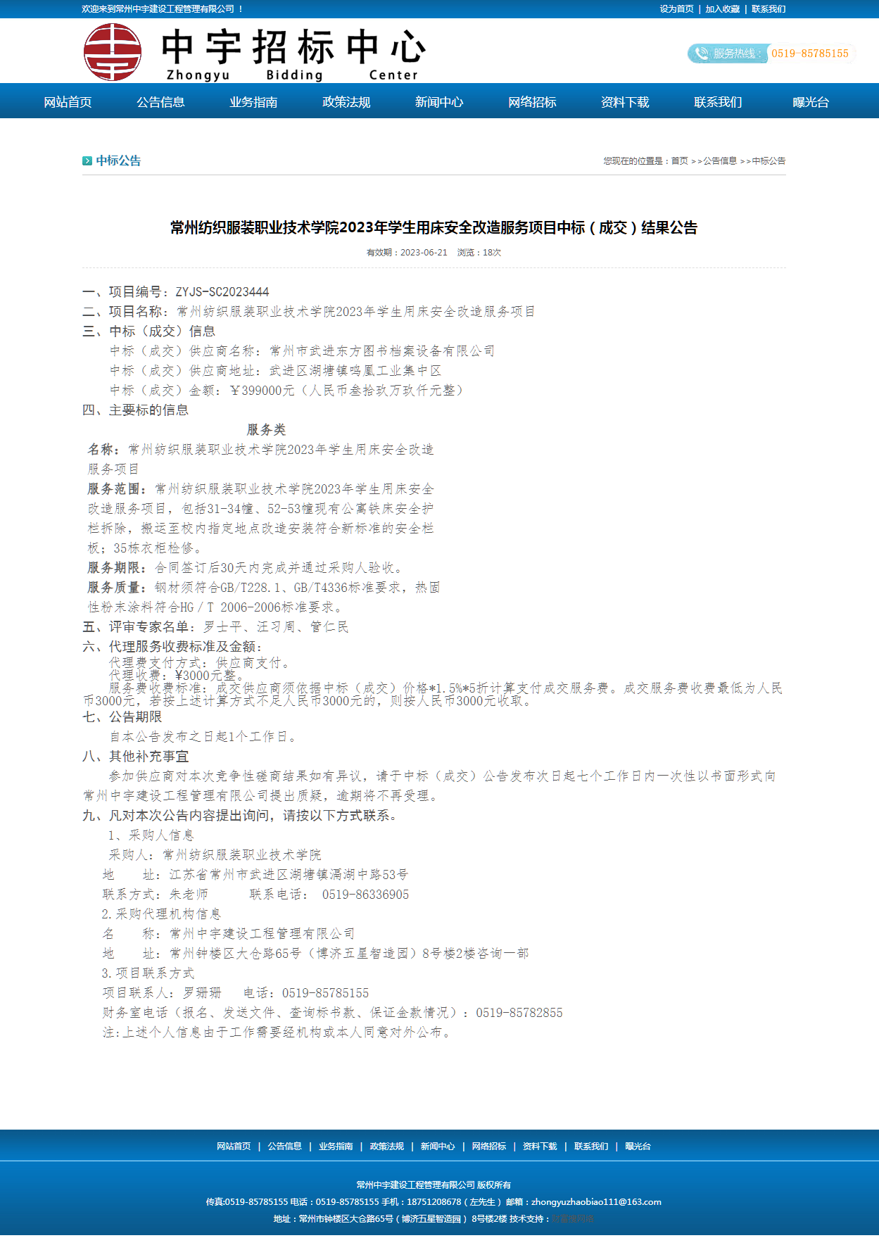 【成交公告】2023年学生用床安全改造服务项目成交结果公告