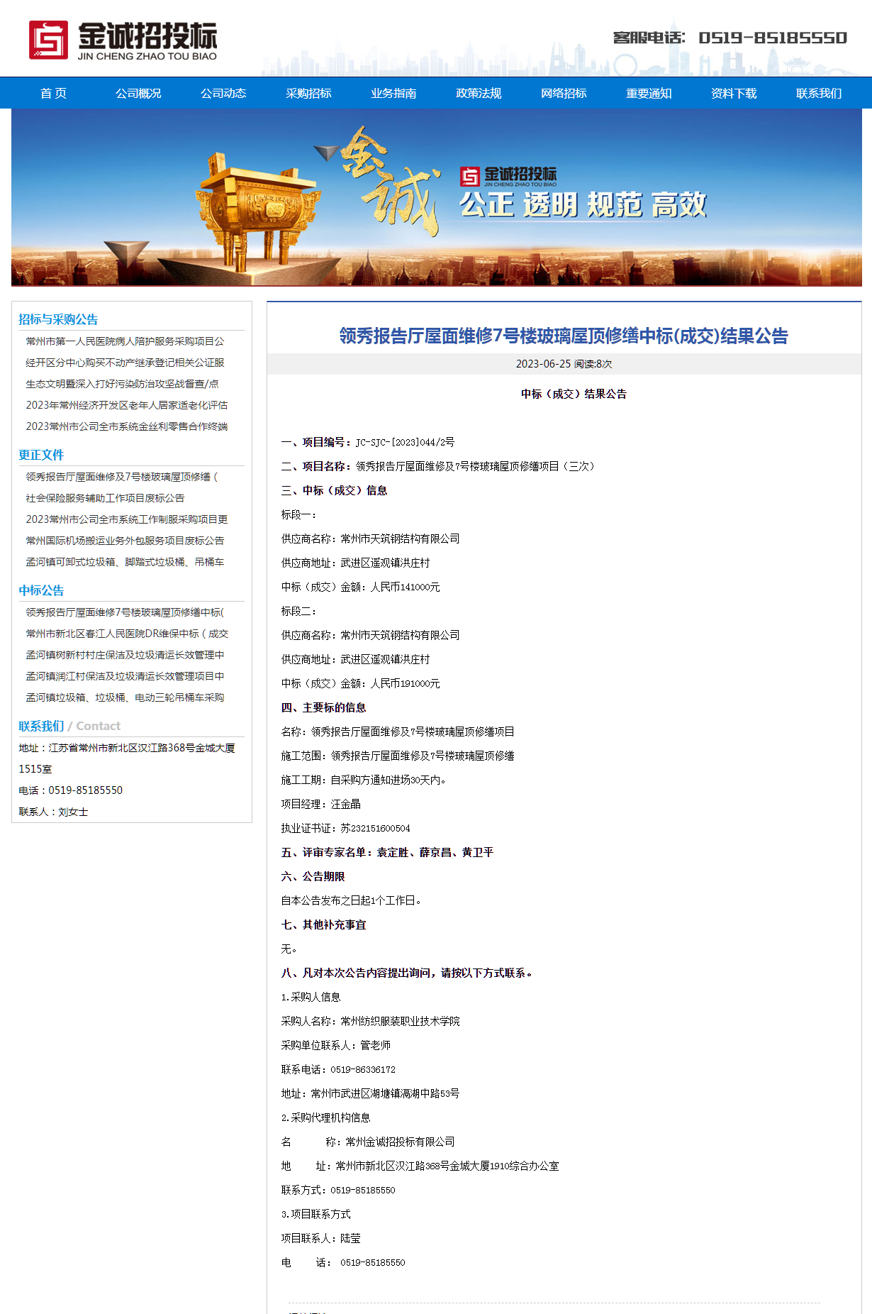 【成交公告】领秀报告厅屋面维修及7号楼玻璃屋顶修缮项目成交结果公告