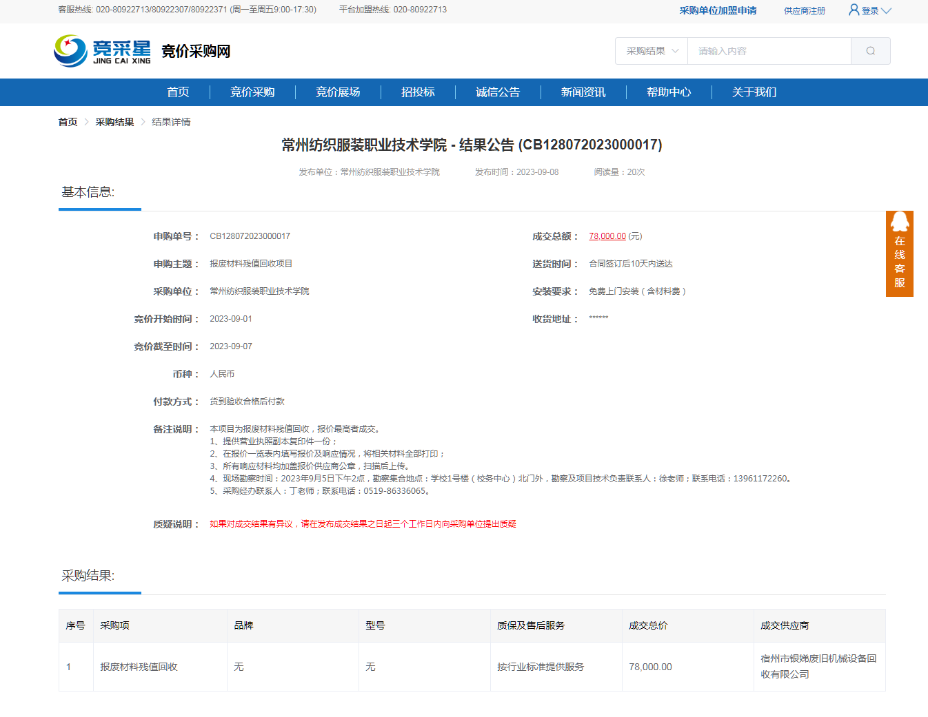 【成交公告】报废材料残值回收项目成交公告
