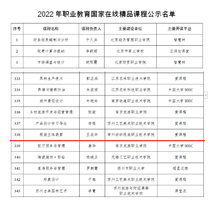 《服装立体裁剪》课程成功遴选为职业教育国家在线精品课程