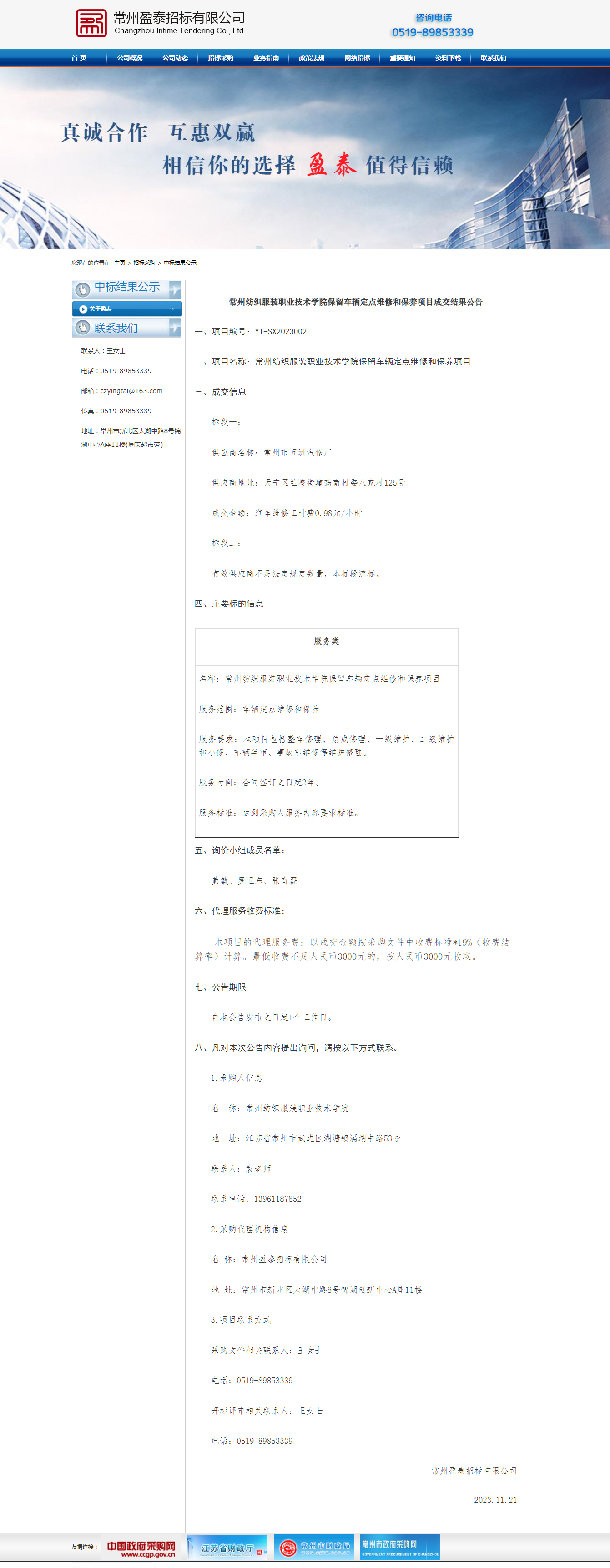 【成交公告】保留车辆定点维修和保养项目成交结果公告