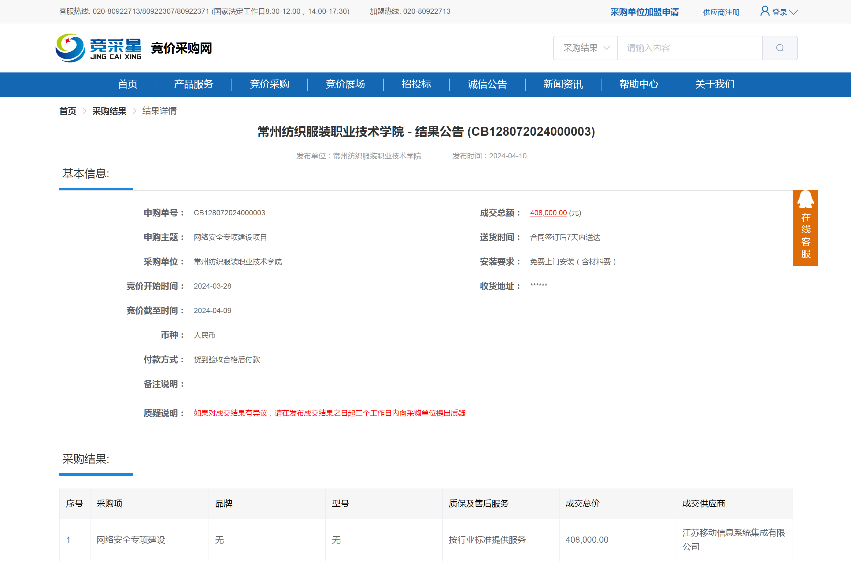【成交公告】网络安全专项建设项目成交公告
