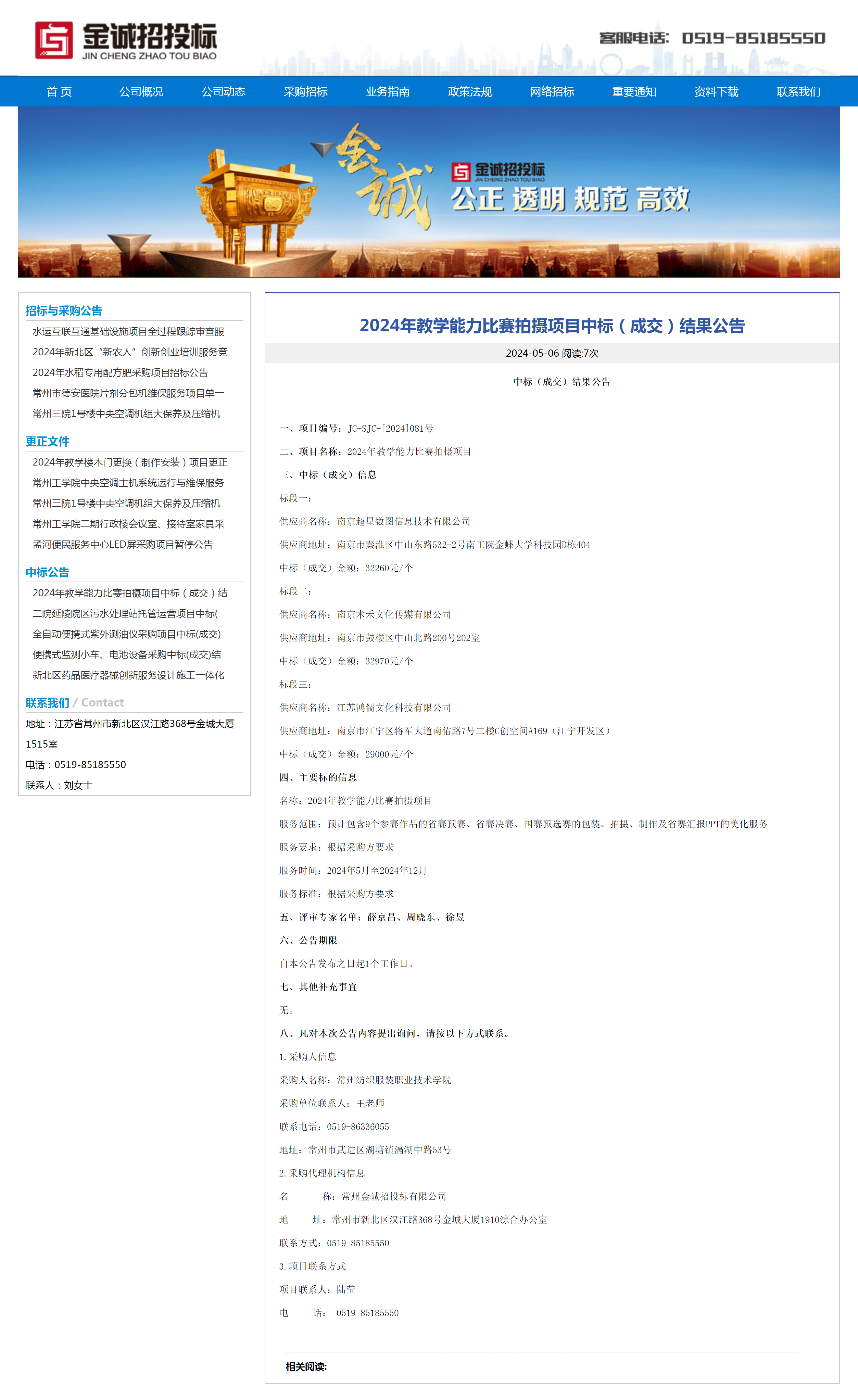 【成交公告】2024年教学能力比赛拍摄项目成交结果公告
