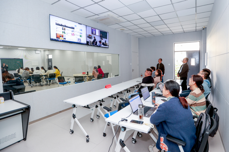 11月6日,为推动新质课堂认证工作,提升教师教学规范、教学能力水平以及教学质量,进一步深化课堂教学改革,促进教师数字素养提升,我校举办了“首批新质课堂认证公开课”集体教研活动。老师们通过线上、线下开展观摩,党委委员、副校长马昀,教务处、二级教学单位相关领导、新质课堂认证团队和全校专任老师参加此次活动。