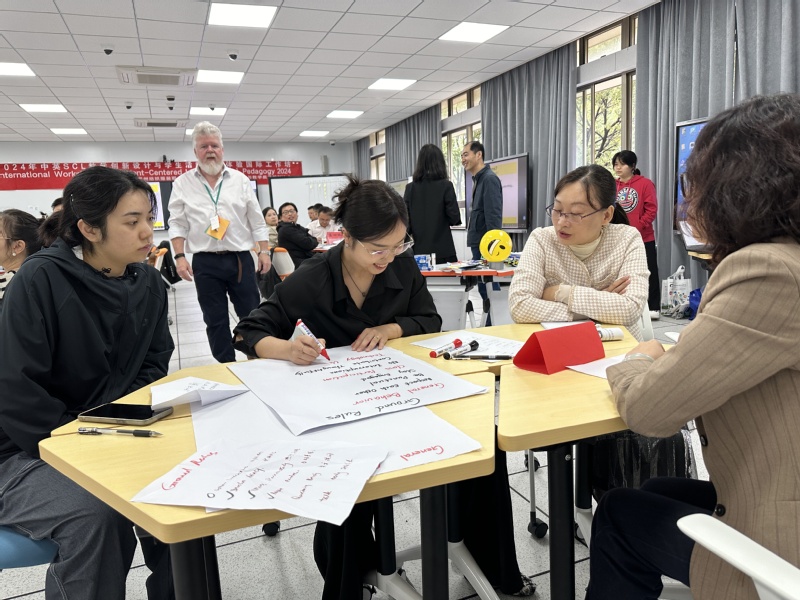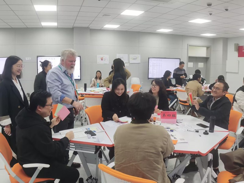 全体参训教师在9213智慧教室开展了为期三天的英方工作坊课程学习。Rod Robertson教授以纯英式工作坊带领大家深入体验了SCL学生活动工具,通过亲身示范和互动环节,详细介绍其背景、理念和应用场景,有效激发教师学习的兴趣,培养教师创新思维和团队协作能力。在精心设计和引导下,参训教师亲身感受了SCL教学法的独特魅力。
