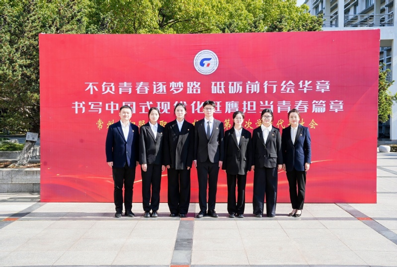 裴玺代表共青团常州市委致辞,并代表团市委、常州市学联向全校同学提出四点期望:一是要推进学生会改革深化,持续打造学生会务实清廉的作风形象,主动将“小我”融入“大我”,在强国建设、民族复兴伟业中刻苦学习、挺膺担当;二是加强理论武装,增强用党的创新理论武装青年的政治自觉;要引导青年学生树立远大志向,勤奋学习、刻苦锻炼,真学实用、知行合一,在实践中学习、在实践中提高、在实践中成长;三是优化服务质量,持续保持服务青年学生发展进步的热忱初心,持续做好陪伴引领,丰富学生会主导的集体活动和集体生活,助力同学社会交往、心灵塑造、人格养成;四是加强从严治会,凝聚建功学校高质量发展的磅礴力量,要抢抓机遇、自我革新,主动适应形势变化,全面加强自身建设。