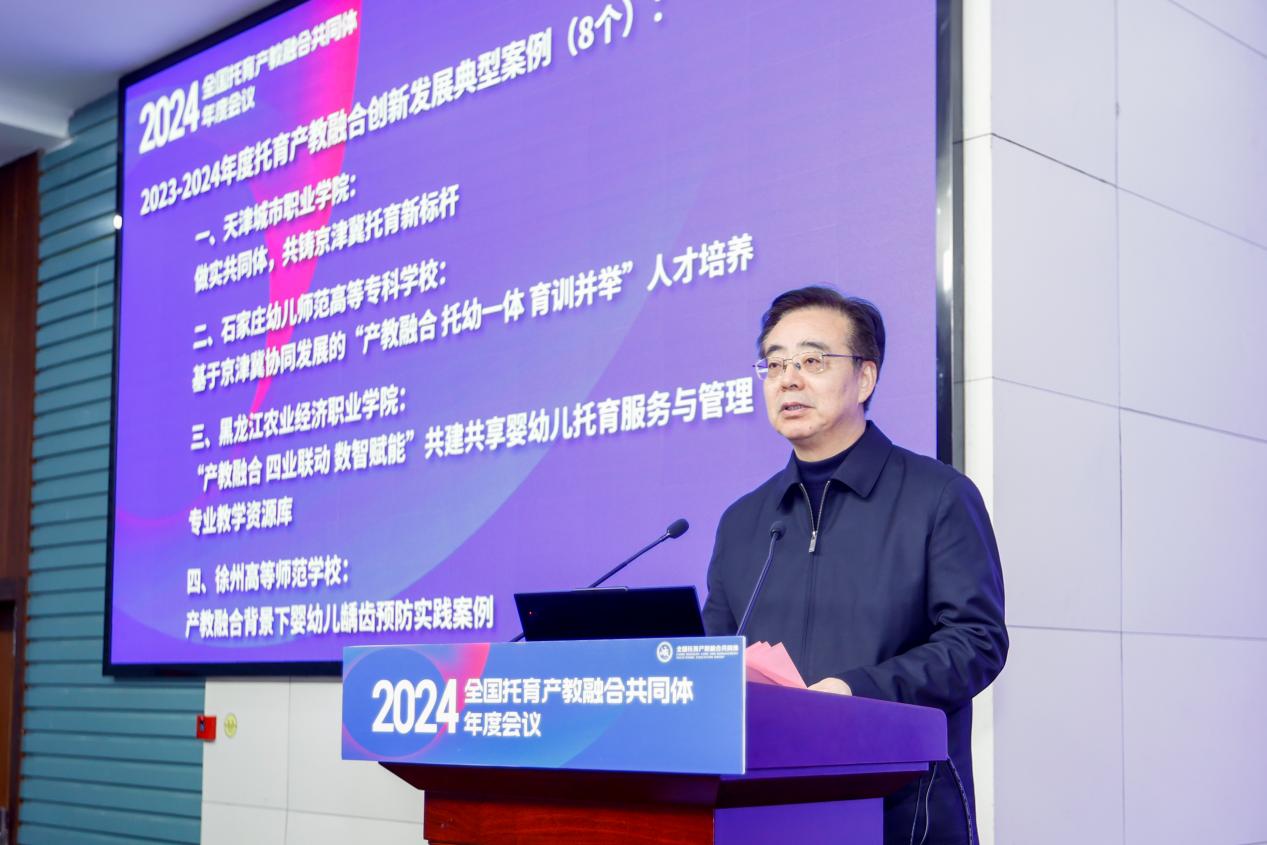 江苏联合职业技术学院党委书记刘克勇公布了8个共同体“2023-2024年度托育产教融合创新发展典型案例名单”,并进行了精彩点评。