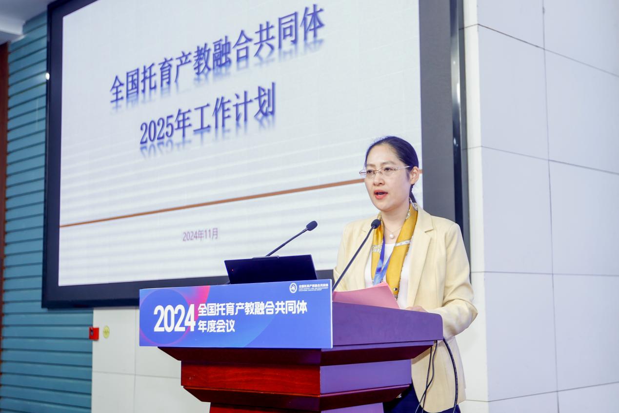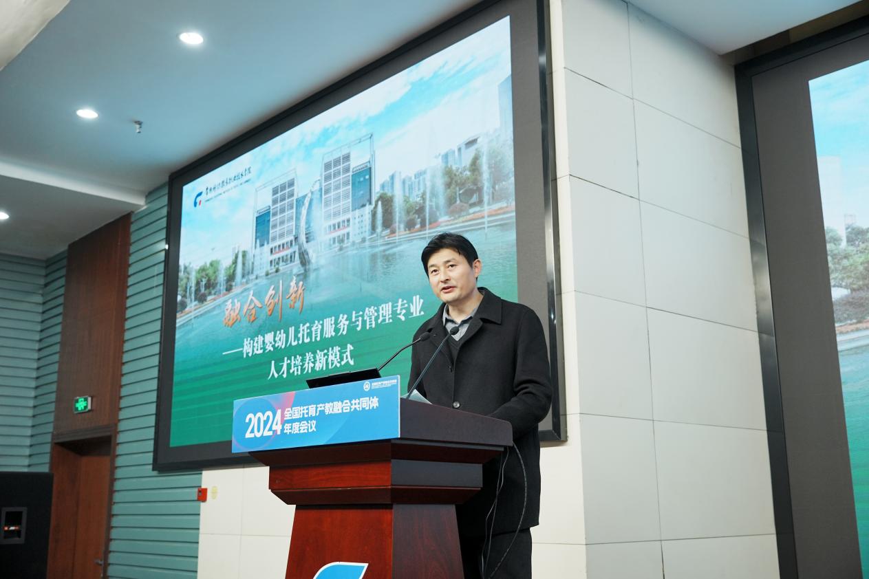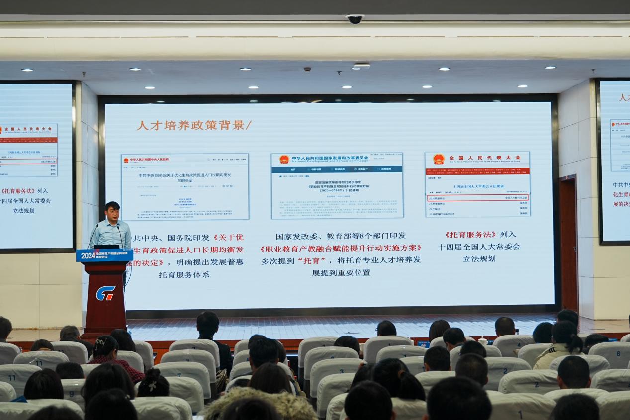 会上,洪霄致欢迎辞。他分享了学院立足自身优势,精准对接托育产业发展需求,积极探索托育人才培养的实践探索和系列成果。随后,他从人才培养、标准制订、“五金”建设及数字化转型等方面汇报了2024年度在推动托育产教融合方面取得的成就。
