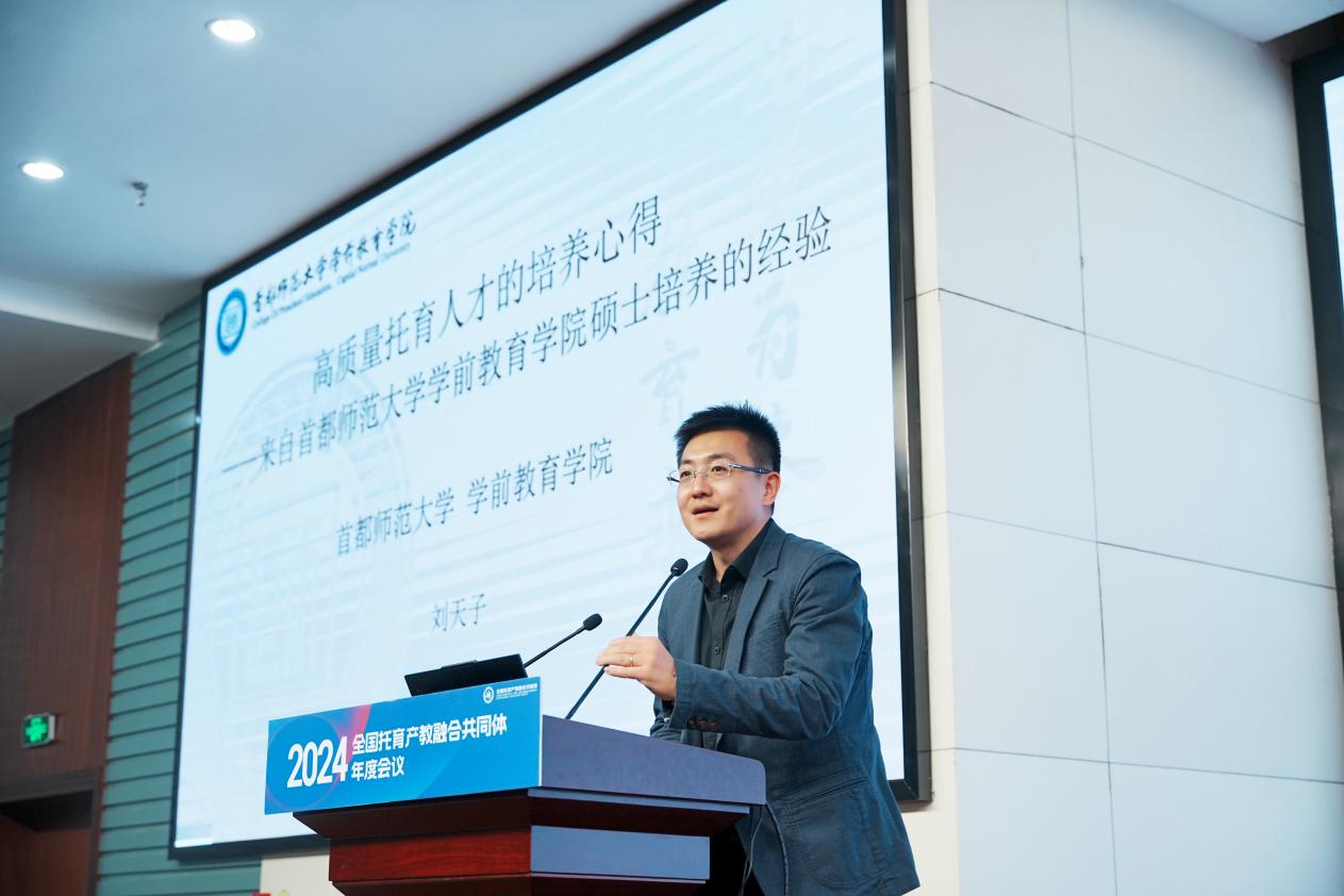 首都师范大学学前教育学院讲师刘天子以题为《高质量托育人才的培养心得》的报告,分享了学校托育方向研究生的培养经验。