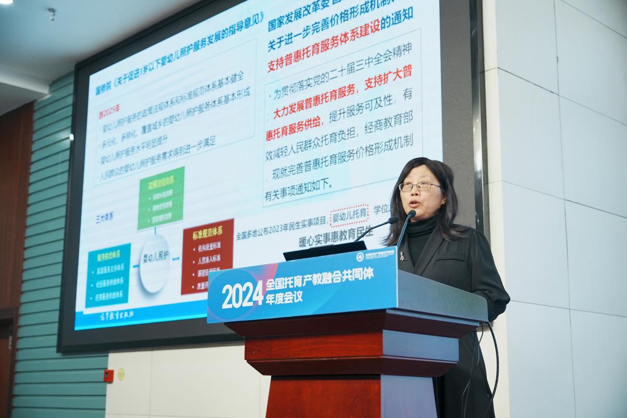 杭州师范大学0-3岁婴幼儿发展与托育研究中心副主任张晶作了《助力“幼有善育”,高校托育人才培养的探索与实践》的报告,分享了杭州师范大学在托育人才培养经验。