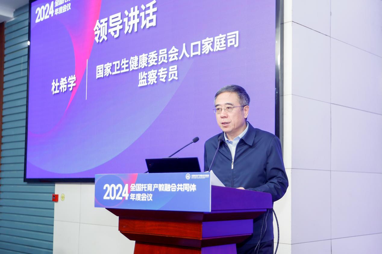 国家卫生健康委员会人口家庭司监察专员杜希学在讲话中对共同体的工作给予了充分肯定,并对未来的工作提出了指导意见。他强调,希望大家充分发挥自身优势和办学特色,围绕人才培养、专业建设、师资培训、产教融合开展合作交流,推动全国托育职业教育发展,为全国托育行业培养更多专业人才。