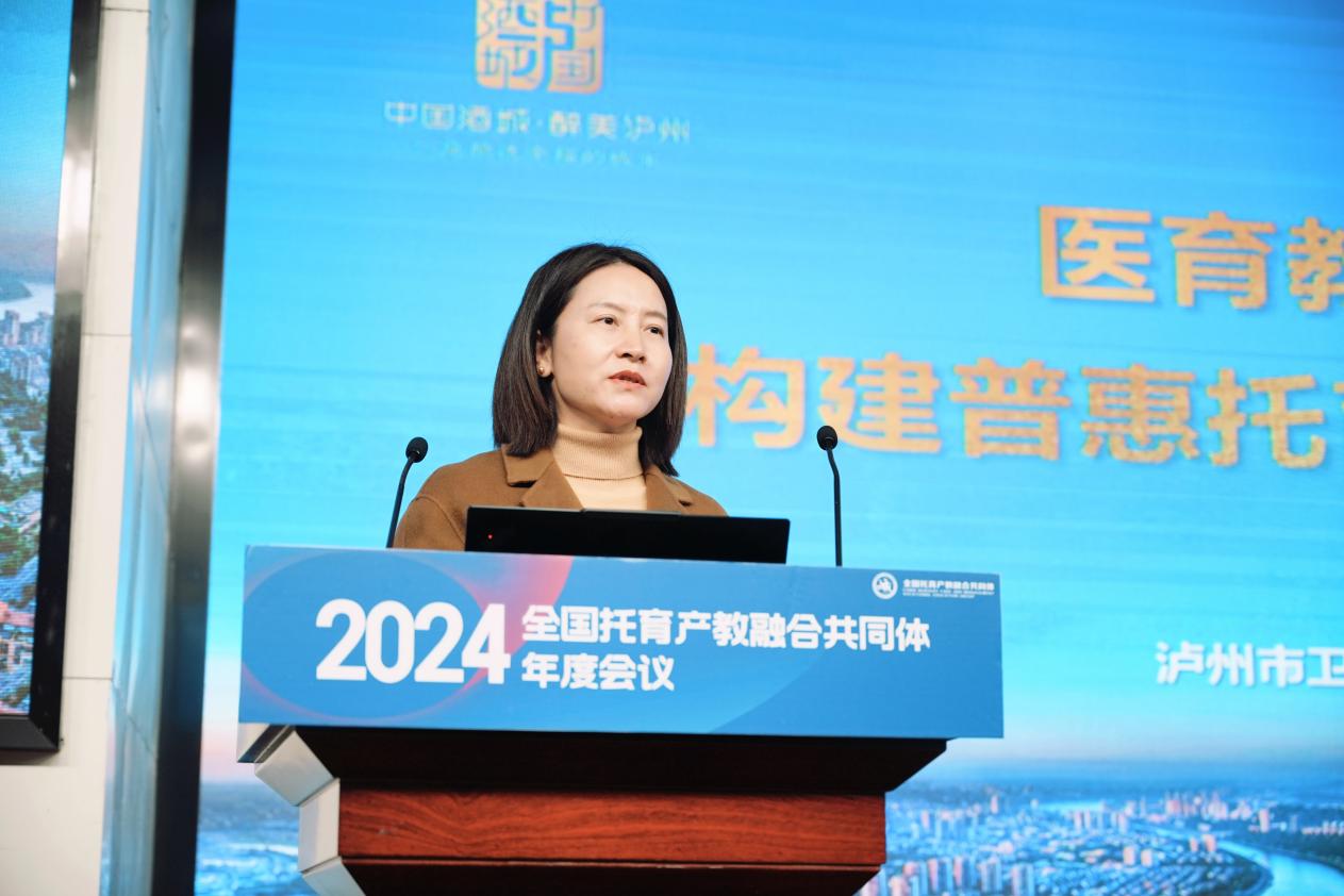 四川省泸州市卫生健康委员会党组书记、主任曾妍作了题为《医育教研四位协同,构建普惠托育高质量发展新格局》报告,分享了泸州市普惠托育经验。