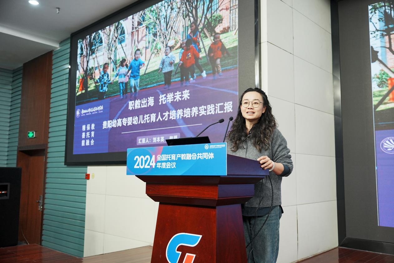 贵阳幼儿师范高等专科学校社工学院副院长刘本英,总结凝练本校助力东盟托育人才建设经验和成果,作了题为《职教出海 托举未来--婴幼儿托育人才培养实践路径》的报告。