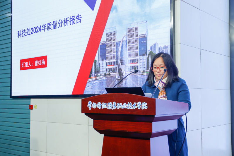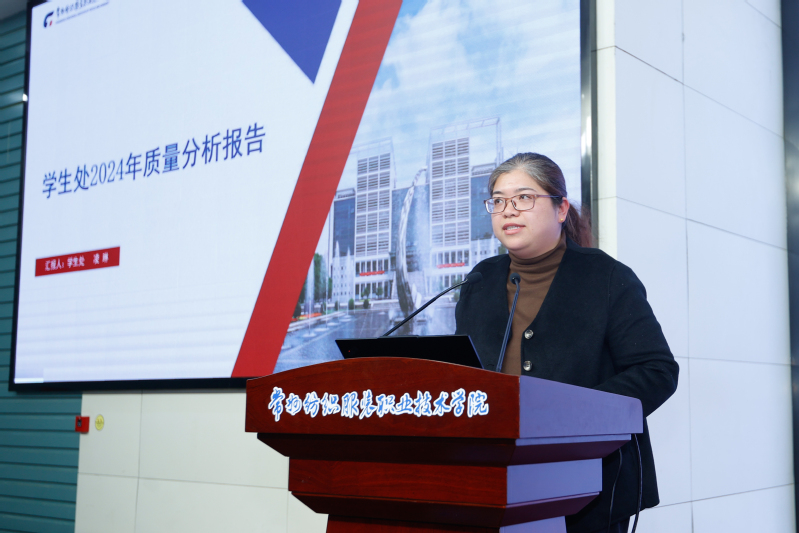 会上,教务处处长王一凡、科技处处长曹红梅、人事处处长夏冬、产教处处长严纲、学生处处长凌琳、招就处处长高妍、继教处处长姜燕作了专题质量分析报告,分别从学校专业建设质量、科技创新服务质量、队伍建设质量、产教融合质量、学生发展质量、生源及毕业生就业质量、继续教育与社会服务质量等方面进行了总结研判,并提出了思路举措。