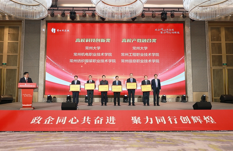 2025年2月16日,常州科教城举办“政企同心共奋进聚力同行创辉煌”高质量发展大会,我校荣获“高校科技创新奖”。学校党委副书记、校长洪霄参会并代表学校领奖。