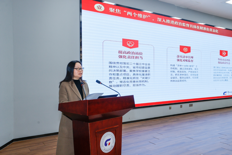 党委副书记、校长洪霄首先简要回顾和分析了2024年党政工作要点完成情况,然后洞察职教发展形势,要求大家牢牢锚定国家发展战略需求定位,积极顺应技术革命和产业变革发展态势,深度聚焦职业教育自身发展要求。最后他从三个方面对学校2025年工作做部署:一是聚焦一个核心目标,就是要把坚持立德树人根本任务,培养德智体美劳全面发展的高技能人才作为我们的核心目标。二是打好三大攻坚战役,做到三个“聚焦”:聚焦申本创大目标,汇聚全员奋进“新力量”;聚焦产教深度融合,探索协同育人“新路径”;聚焦关键要素改革,重塑创新发展“新生态”。三是落实五大重要任务,分别是数字转型赋新能,激活教育教学“智慧脑”;科技创新强驱动,开启成果转化“快通道”;社会服务树品牌,拓宽服务社会“辐射面”;开放办学扩影响,搭建国际交流“连心桥”;治理效能提质效,筑牢稳健发展“压舱石”。