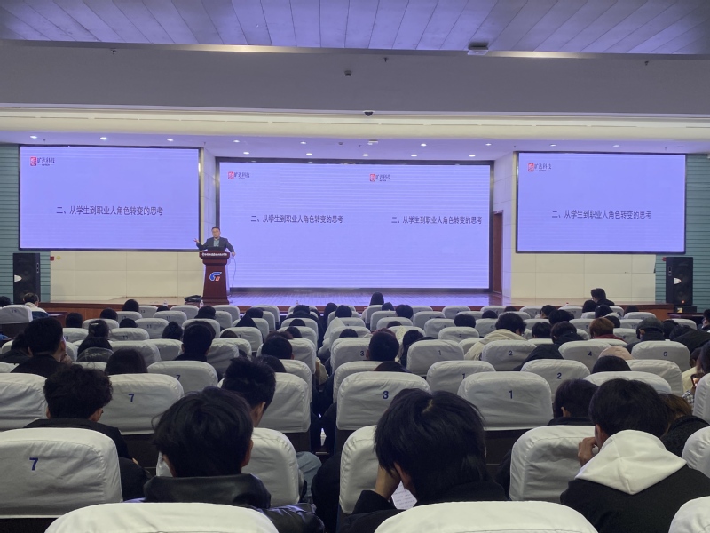吴双全以“从学生到职场人角色转变的思考”为主题,结合自身从业经历,系统剖析了校园与职场的思维边界。他分析对比了学生和职业人在承担责任、面对环境和人际关系方面的差异,提出了职业人需具备的显性素养和隐性素养。他建议毕业生可以向心理适应、生理适应、岗位适应、知识技能适应等四个方向转变,最后他还分享了详细的行动转变指南。