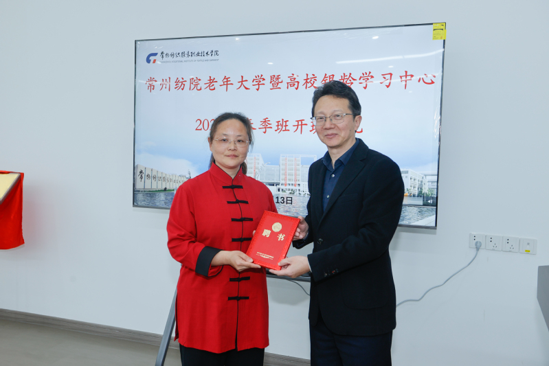 典礼开始,张文明代表学校致欢迎辞,从前期规划调研、建设论证讨论、学校改造建设、课程设置研讨、社区宣传推广等方面回顾了我校老年大学的前期筹备情况。丁皓处长代表常州市教育局宣读《关于成立常州纺院老年大学的批复文件》,丁皓处长在宣读批文时强调:支持高校开办老年大学,是常州市推进老年教育高质量发展的重要举措。会议在轻快的音乐声中迎来重要时刻,教育局俞群祥副局长与洪霄校长共同为常州纺院老年大学揭牌,随着红绸缓缓落下,“常州纺院老年大学”金色牌匾正式亮相。一份批文,一份责任;一份认可,一份使命!相信在常州市教育局的指导下,学校的坚强领导下和社会各界的关心下,常州纺院老年大学定会越办越好。