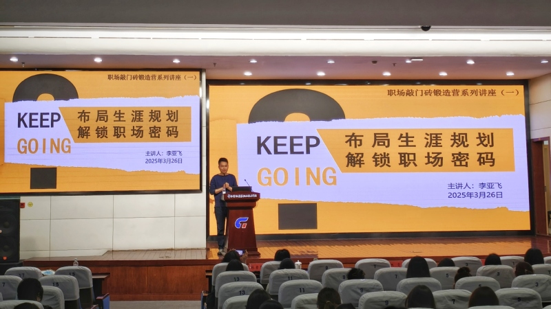 为提升大学生职业发展能力,增强就业竞争力,3月26日晚,人文与健康学院在图文报告厅推出“文曦启迪讲堂”系列之“职场敲门砖锻造营”专题讲座,本次讲座以“布局生涯规划,解锁职场密码”为主题,特邀GCDF全球职业规划师、人力资源管理师、高级工程师李亚飞担任主讲嘉宾,学工办主任俞旭、就业辅导员于康凤、专任教师尤霄和2023级在校生共同参与。