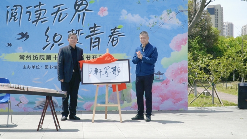 本次读书节以“阅读无界,织梦青春”为主题,旨在通过策划创新多元的活动,激发全校师生的阅读热情,推动书香校园建设。人文与健康学院尤霄老师指导的民乐表演《声声慢》为开幕式拉开序幕。夏斌首先向师生们详细介绍了本届读书节的重点活动安排。随后,张文明发表开幕致辞,强调阅读对个人成长和校园文化建设的重要意义,并郑重宣布常州纺院第十六届读书节开幕。紧接着,张文明与夏斌共同为新设立的'静墨轩'书法角揭幕。